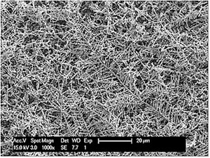 在一項太陽能電池應(yīng)用中,該銀基分形樹被涂在吸光聚合物上。當(dāng)光子撞擊涂層的時候,會在聚合物中產(chǎn)生短期的電子和洞。帶正電荷的洞通過銀分支來收集,同時電子移動至對電極形成電勢差。