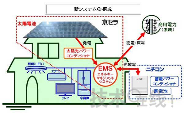 尼吉康的蓄電系統(tǒng)配備了韓國三星SDI的7.1kWh鋰離子充電電池,外形尺寸為120cm×90cm×35cm,重200kg。如果需要,蓄電系統(tǒng)最大可增設(shè)至14.2kWh。該系統(tǒng)和太陽能電池系統(tǒng)一起,結(jié)合京瓷自主開發(fā)的能源管理系統(tǒng)(EMS)構(gòu)成了新太陽能供電系統(tǒng)。