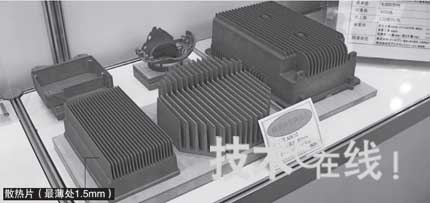 如果散熱片通過薄壁成型使散熱性得到提高的話,還可為輕量化做出貢獻。此外,由于形狀靈活性較高,因此還可對限定于有限空間內的緊湊且復雜的形狀進行成型。如果利用該精密鑄造技術對以往通過接合多個部件來制造的部件進行一體成型的話,“還有望使成本得到降低”(該公司解說員)。