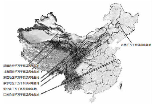 國家電網(wǎng)提出了“建設(shè)大基地、融入大電網(wǎng)”和“由近及遠(yuǎn)、分期建設(shè)”的總體消納思路,并從2009年開始,組織國網(wǎng)北京經(jīng)濟(jì)技術(shù)研究院、有關(guān)網(wǎng)省公司和電力設(shè)計院對上述問題進(jìn)行分析研究,提出了七大風(fēng)電基地2015和2020年接入系統(tǒng)及輸電規(guī)劃方案。