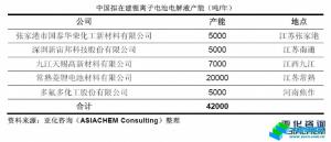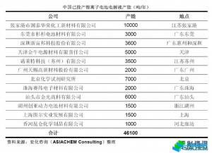 與此同時(shí),中國內(nèi)資電解液領(lǐng)軍企業(yè)也紛紛進(jìn)行產(chǎn)能擴(kuò)張。截至2012年9月,包括合資和外資企業(yè),中國鋰離子電池電解液已投產(chǎn)的產(chǎn)能達(dá)4.61萬噸,擬在建的產(chǎn)能4.2萬噸,如下表所示。
