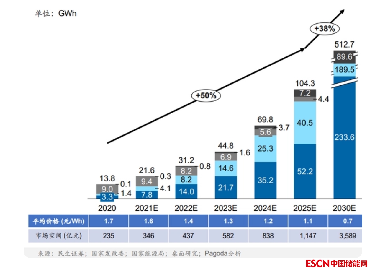 國家能源局?jǐn)?shù)據(jù)顯示,中國新型儲能裝機(jī)規(guī)模預(yù)計(jì)復(fù)合年均增長率為51%,抽水蓄能裝機(jī)規(guī)模復(fù)合年均增長率預(yù)計(jì)為13%。而儲能建設(shè)的大提速,一方面來源于雙碳目標(biāo),另一方面則在于政策、技術(shù)、資本的多方合力。
