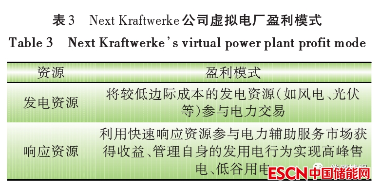 目前,虛擬電廠模式發(fā)展較為成熟的國(guó)家是德國(guó)。作為歐洲最大的虛擬電廠運(yùn)營(yíng)商之一的德國(guó) Next Kraftwerke 公司,其業(yè)績(jī)非常突出。Next Kraftwerke 公司已經(jīng)對(duì)德國(guó)、比利時(shí)等多個(gè)國(guó)家的1.3萬(wàn)個(gè)分布式能源單元和可調(diào)負(fù)荷實(shí)現(xiàn)了管理,2020年?duì)I收5.95億歐元,其主要盈利模式如表3所示。