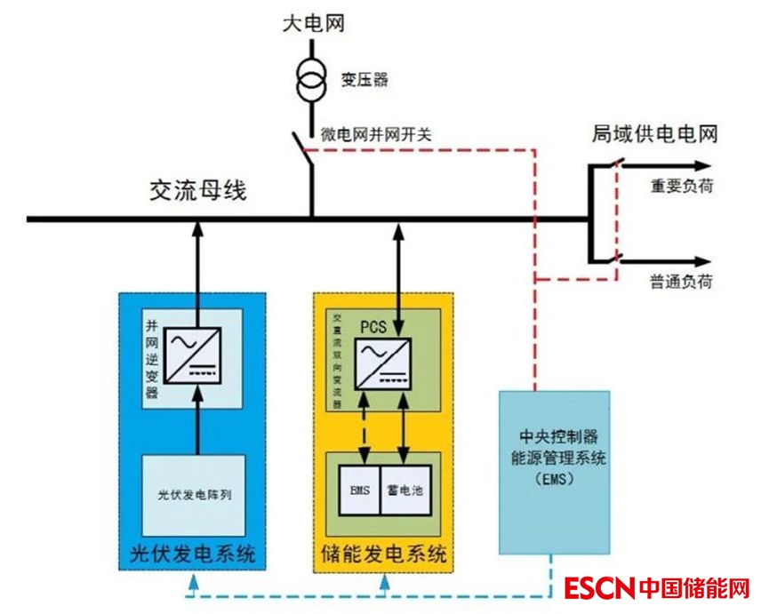 圖:采用PCS的交流耦合儲能的工商業(yè)儲能系統(tǒng)