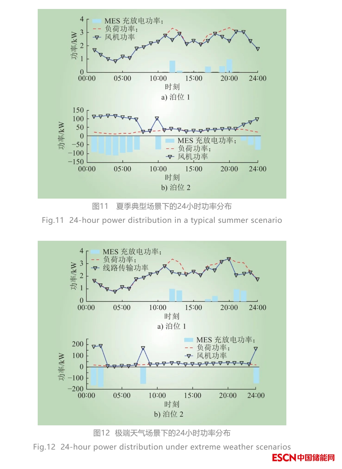 圖11、12為不同場(chǎng)景下的海島微電網(wǎng)的功率分布情況。