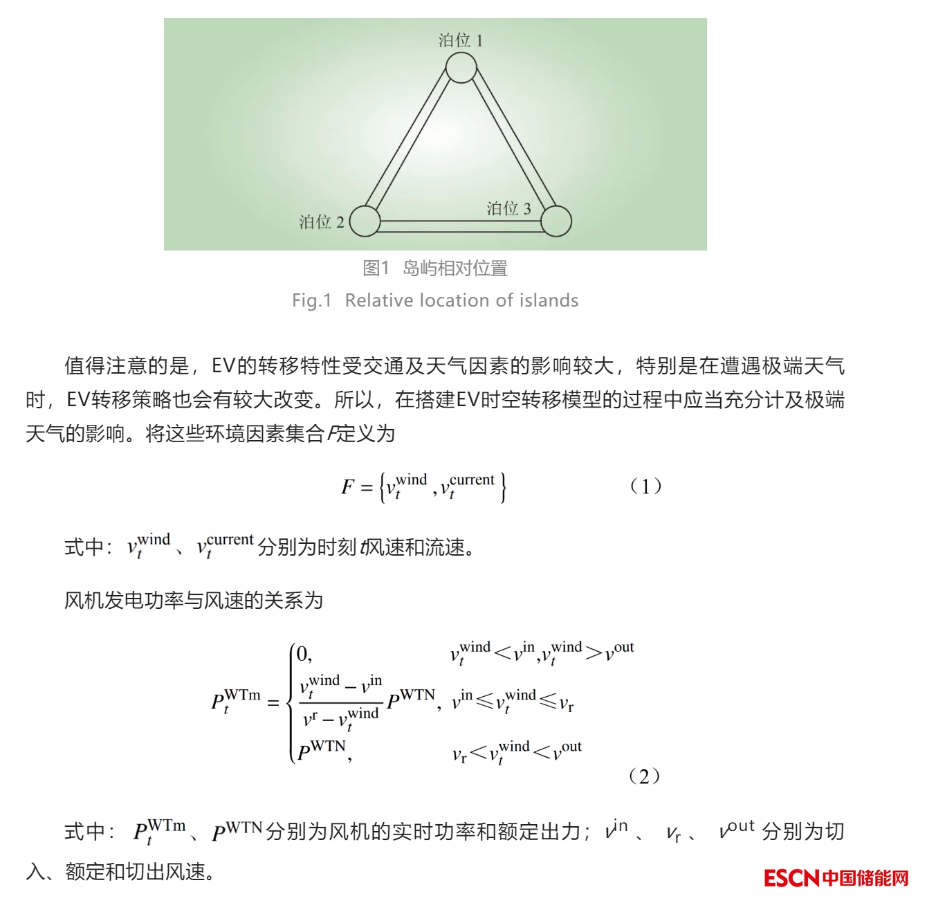 EV由于兼具可移動(dòng)性和儲(chǔ)能系統(tǒng)特性,可以作為新型能量傳輸通道實(shí)現(xiàn)海島負(fù)荷的靈活供電。在此架構(gòu)下,對(duì)于與大陸電網(wǎng)直接相連的海島,電網(wǎng)可以通過(guò)海底電纜進(jìn)行能量傳輸;而對(duì)于沒(méi)有聯(lián)網(wǎng)的海島,可以通過(guò)EV在海島間進(jìn)行能量傳輸,實(shí)現(xiàn)海島的經(jīng)濟(jì)供電。