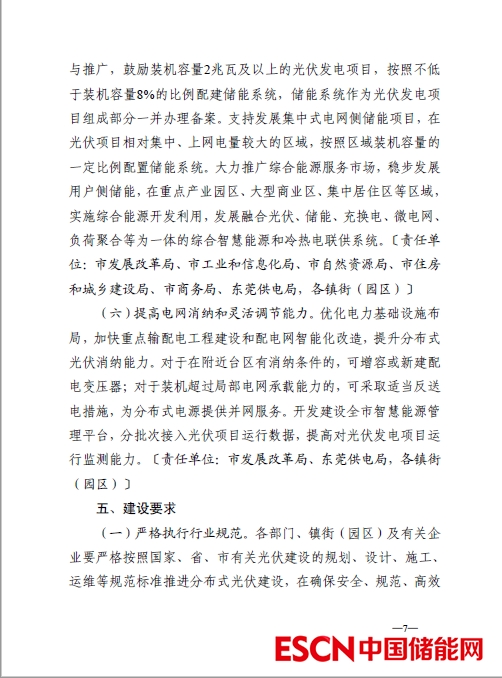 中國(guó)儲(chǔ)能網(wǎng)訊:10月9日,廣東東莞市發(fā)改委印發(fā)《東莞市加快分布式光伏規(guī)?;_(kāi)發(fā)利用工作方案》。其中提出要推動(dòng)光伏配建儲(chǔ)能設(shè)施建設(shè),加大新型儲(chǔ)能技術(shù)應(yīng)用與推廣,鼓勵(lì)裝機(jī)容量2兆瓦及以上的光伏發(fā)電項(xiàng)目,按照不低于裝機(jī)容量8%的比例配建儲(chǔ)能系統(tǒng),儲(chǔ)能系統(tǒng)作為光伏發(fā)電項(xiàng)目組成部分一并辦理備案。