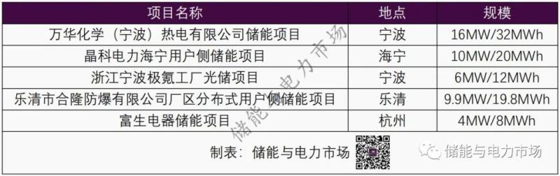 表:浙江部分MW級(jí)用戶側(cè)儲(chǔ)能項(xiàng)目