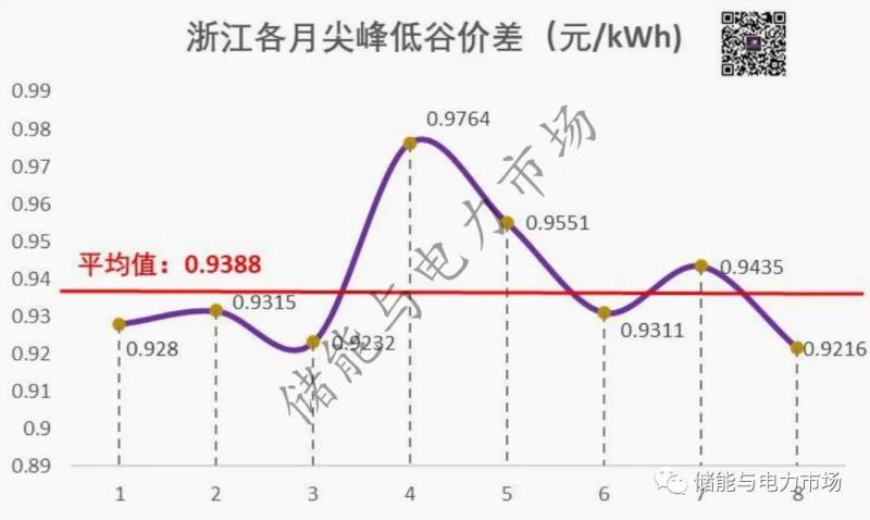 圖:浙江省各月尖峰低谷價(jià)差情況