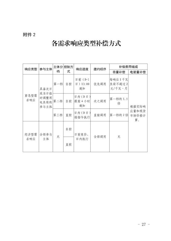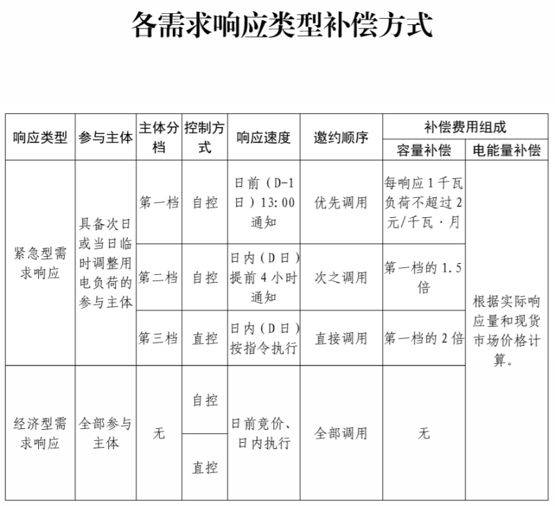 參與需求響應(yīng)可按3檔分別獲得不同的容量補(bǔ)償和能量補(bǔ)償。其中容量補(bǔ)償,分別為不超過2元/kW·月、3元/kW·月、4元/kW·月。