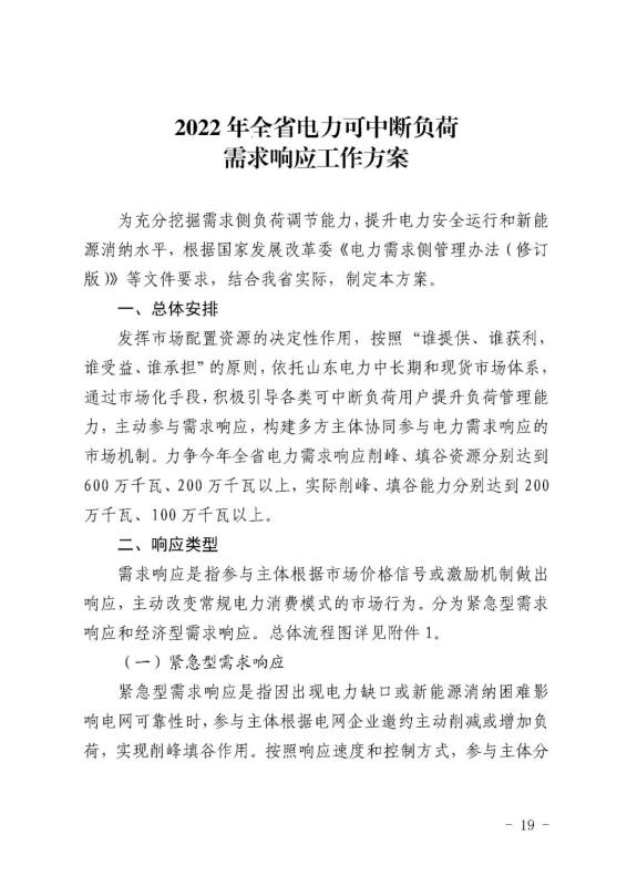 中國儲能網(wǎng)訊:6月7日,山東省能源局印發(fā)《2022年全省迎峰度夏有序用電方案》《2022年全省迎峰度夏有序用電用戶輪停方案》《2022年全省電力可中斷負(fù)荷需求響應(yīng)工作方案》。