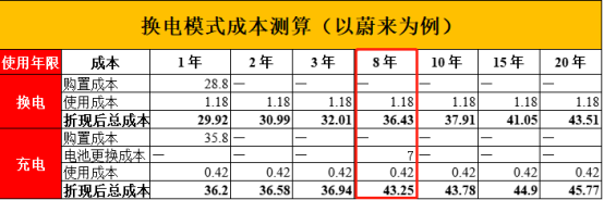 以蔚來為例,一輛35.8萬元的充電模式車型,單獨疊加充電成本,折現(xiàn)總成本也是逐年上升的;但如果使用電池租用模式,初始購置價格僅為28.8萬元,疊加電池租用成本,直到第8年,折現(xiàn)后的總成本才會超過充電模式的購置成本。很顯然,對于3~5年內(nèi)就有升級或換車需求的用戶來說,車電分離的換電模式更加具有性價比。