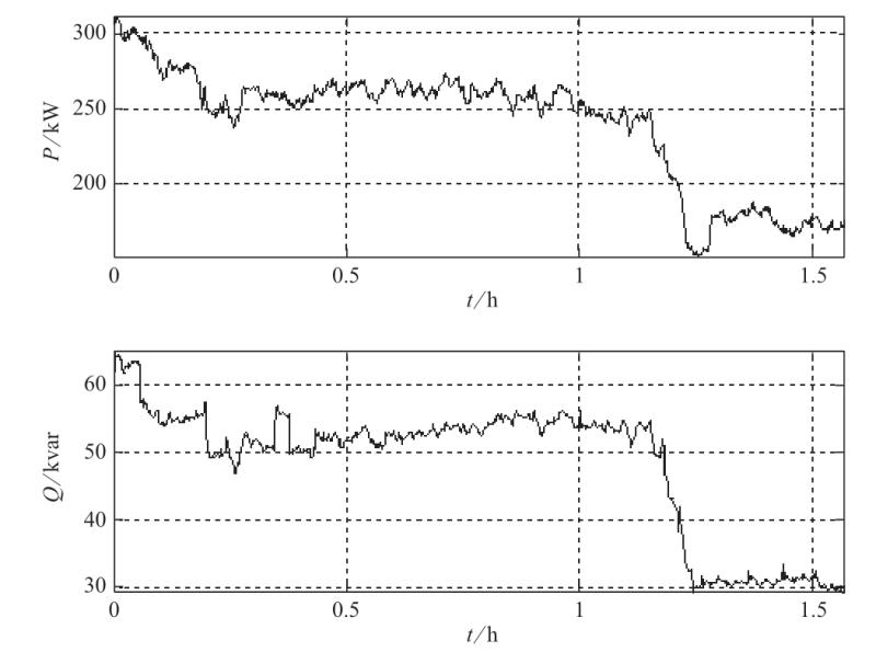 儲能系統(tǒng)參與電力市場輔助服務(wù),要求具備功率調(diào)節(jié)和維持電網(wǎng)穩(wěn)定的功能。對安裝在長崗村通信基站中數(shù)字儲能系統(tǒng)進行功率測試,分析系統(tǒng)總進線功率與子系統(tǒng)進線總線數(shù)據(jù)。儲能變流器額定功率100 kW,額定電壓380 V AC,功率因數(shù)為1。該裝置支持并/離網(wǎng)模式,在市電斷電時,雙向儲能變流器的并/離網(wǎng)切換裝置能夠在20 ms內(nèi)無縫切換至離網(wǎng)模式。系統(tǒng)總進線三相基波功率如圖9所示,單相基波功率如圖10所示,系統(tǒng)總進線基波功率較子系統(tǒng)功率穩(wěn)定,表明數(shù)字儲能系統(tǒng)在維持系統(tǒng)總線輸出功率穩(wěn)定中發(fā)揮作用。
