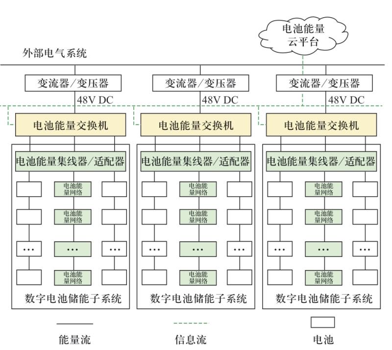 儲能系統(tǒng)可以改變電力系統(tǒng)實時動態(tài)平衡特性,已成為智能電網(wǎng)和能源互聯(lián)網(wǎng)建設(shè)的重要支撐。電池儲能技術(shù)作為一項復(fù)雜系統(tǒng)工程,其研究領(lǐng)域涉及電化學(xué)、材料、信息通信技術(shù)、電力電子及大規(guī)模復(fù)雜系統(tǒng)建模和優(yōu)化等。儲能系統(tǒng)管理需要基于對電池的電化學(xué)和材料特性的感知,實現(xiàn)基于模型的高效均衡和控制。然而,傳統(tǒng)儲能系統(tǒng)采用的固定串并聯(lián)連接方式,無法實現(xiàn)電池單體層面的精準檢測和管控,單點故障將極大影響到系統(tǒng)性能,儲能系統(tǒng)能量效率、可靠性和安全性難以保障?;诳芍貥?gòu)電池網(wǎng)絡(luò)的數(shù)字儲能技術(shù)通過高頻高效的電力電子半導(dǎo)體器件將電池單體產(chǎn)生的連續(xù)能量流進行離散化和數(shù)字化處理,電池在物理域的映射關(guān)系轉(zhuǎn)化為數(shù)字域映射,從而消除電池單體物理和化學(xué)屬性所造成的差異性,克服電池系統(tǒng)的“短板效應(yīng)”,并可通過電池網(wǎng)絡(luò)拓撲結(jié)構(gòu)的靈活調(diào)整能力實現(xiàn)與多種應(yīng)用場景需求的匹配。