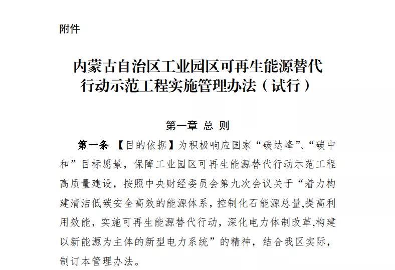 附件:《內(nèi)蒙古自治區(qū)工業(yè)園區(qū)可再生能源替代行動(dòng)示范工程實(shí)施管理辦法(試行)》