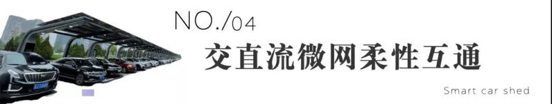 該項目采用特來電“光儲充放”智慧車棚,集成了新能源微網(wǎng)的功能特色,是以微小系統(tǒng)展示多元功能的典型。具備未來感、科技感外觀,綠色能源概念雙玻光伏頂棚,超高設(shè)備集成度設(shè)計,體現(xiàn)了“光、儲、充、放”新能源發(fā)展理念,適用于地方政府、生態(tài)小鎮(zhèn)、綠色生態(tài)工業(yè)園等現(xiàn)代化場景。