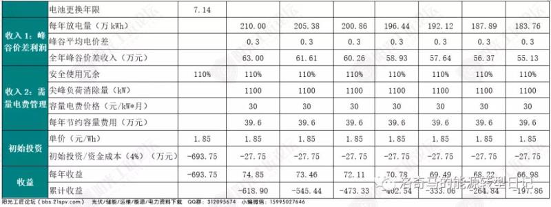 一、峰谷差價(jià)收入,電站運(yùn)行(5000/(350×2)≈7)7年峰谷電價(jià)差收入490.37萬(wàn)元。