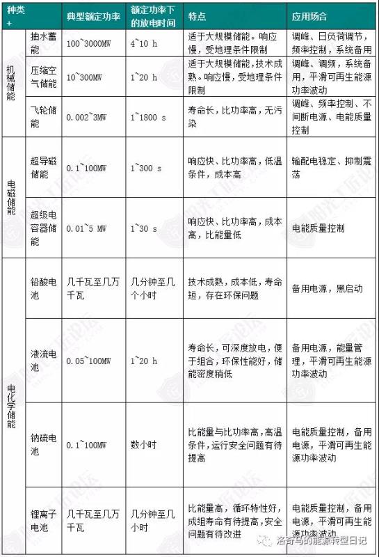 各種儲(chǔ)能技術(shù)的詳細(xì)介紹與比較如表1-1所示。