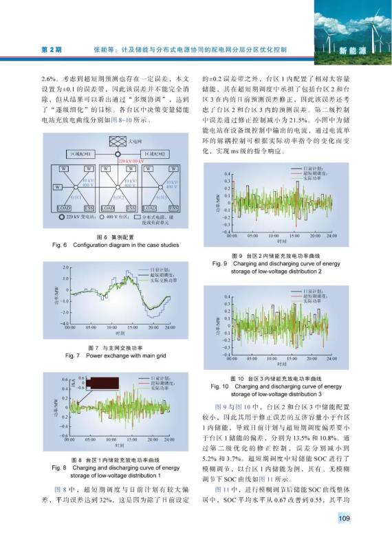 (4)在超短期調(diào)度層中,所采用的SOC模糊自適應(yīng)控制,可有效改善儲(chǔ)能SOC維持在充放電能力均衡的狀態(tài),以應(yīng)對(duì)無規(guī)則的正負(fù)誤差修正。