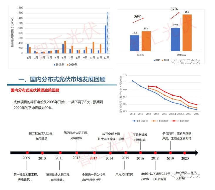 2020年,全年光伏新增裝機43~45GW,同比增長約43%~49% ;其中,分布式預期新增約15.4GW,同比增長約26%;集中電站預期新增約28.1GW,同比增長約57%