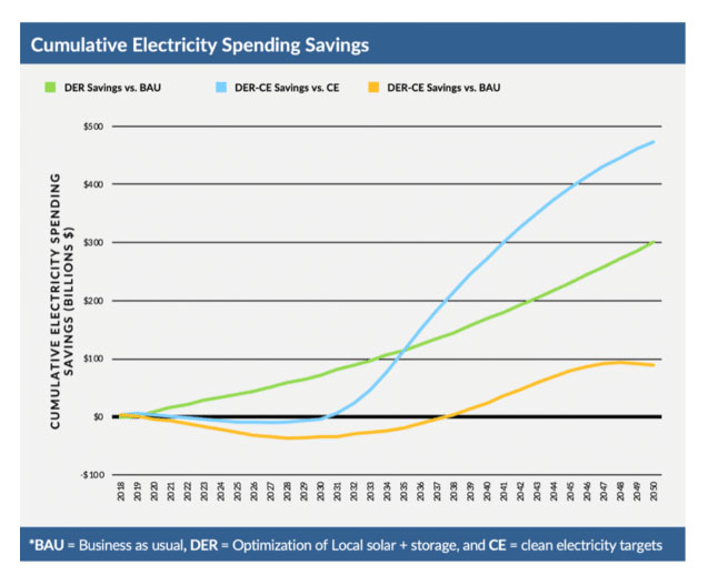當(dāng)公用事業(yè)公司使用更好的規(guī)劃模型并擴(kuò)展本地太陽能+儲能項目,以及增加部署電網(wǎng)規(guī)模太陽能發(fā)電和風(fēng)力發(fā)電設(shè)施時,可以最大程度地節(jié)省成本,并開辟通往成本最低的電網(wǎng)的道路。實際上,它可以在未來30年為美國的用戶節(jié)省近五萬億美元的電力成本。