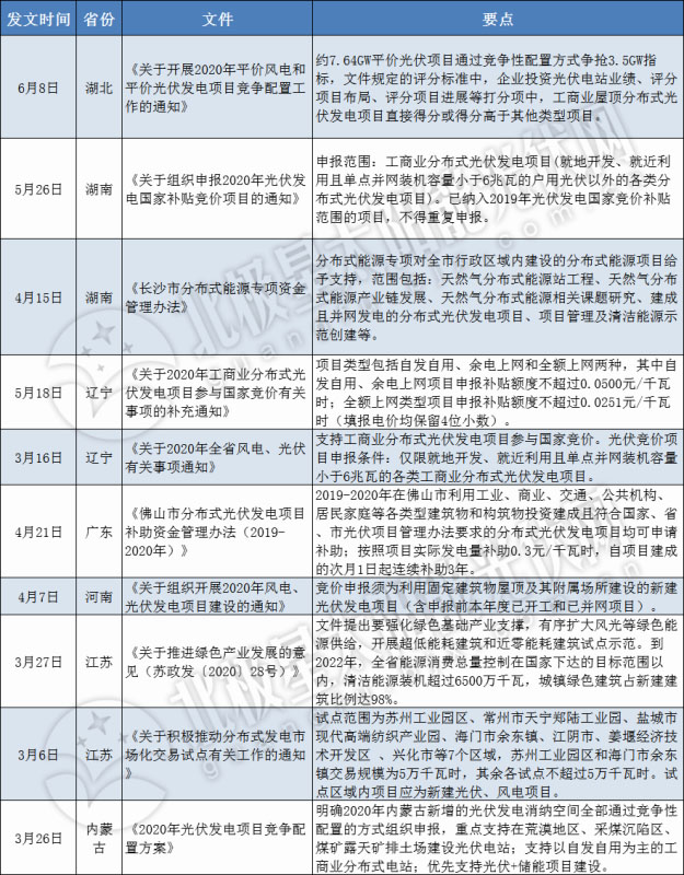 據(jù)小編統(tǒng)計(jì),進(jìn)入2020年以來(lái),江蘇、內(nèi)蒙古、河南、廣東、遼寧、湖南、湖北等省份均先后出臺(tái)了多項(xiàng)利好分布式光伏項(xiàng)目的政策。