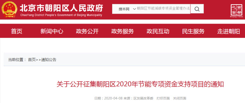 公開(kāi)征集朝陽(yáng)區(qū)2020年節(jié)能專(zhuān)項(xiàng)資金支持項(xiàng)目的通知