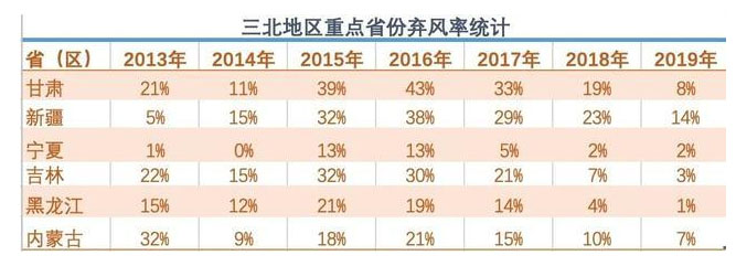 但事實上,在隨后的幾年內(nèi),三北地區(qū)棄風(fēng)限電問題不僅沒有得到解決,反而全面升級。到2016年,甘肅省棄風(fēng)率高達(dá)43%,新疆和吉林棄風(fēng)率均超過30%。