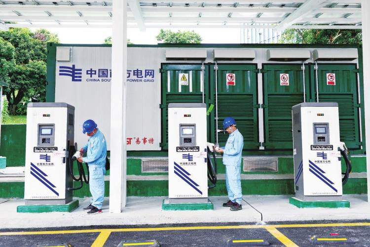 東莞供電局工作人員例行檢查充電站設(shè)備。劉文慧 攝