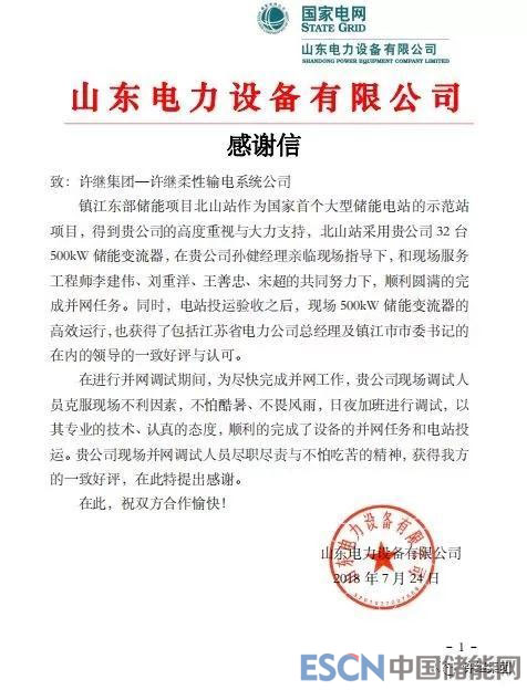 在江蘇鎮(zhèn)江儲(chǔ)能項(xiàng)目中,鎮(zhèn)江新區(qū)五峰山48臺(tái)PCS、揚(yáng)中三躍20臺(tái)PCS和鎮(zhèn)江北山站32臺(tái)PCS全部由許繼集團(tuán)提供,2018年7月實(shí)現(xiàn)全部并網(wǎng),PCS以優(yōu)異的性能實(shí)現(xiàn)了對(duì)電網(wǎng)的調(diào)頻、調(diào)壓和調(diào)峰功能,為電網(wǎng)安全穩(wěn)定運(yùn)行提供了強(qiáng)有力的支撐。