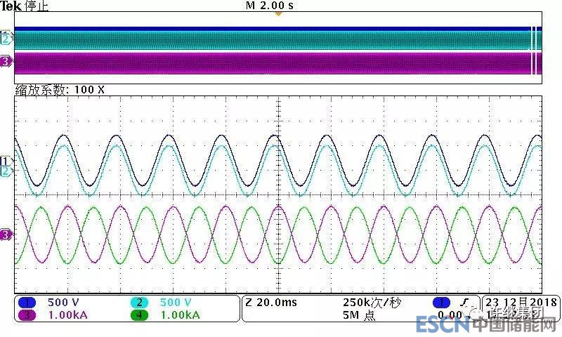 現(xiàn)場(chǎng)4臺(tái)PCS直接并聯(lián)運(yùn)行的電壓電流波形
