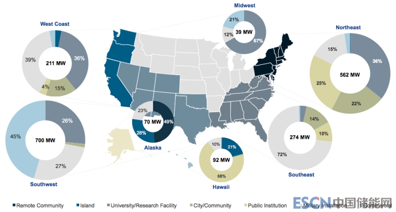 Navigant Research的研究分析師Johnathon de Villier說(shuō):“微電網(wǎng)部署跟蹤器顯示北美是總?cè)萘糠矫骖I(lǐng)先的微電網(wǎng)市場(chǎng),其次是亞太地區(qū),中東和非洲?!?