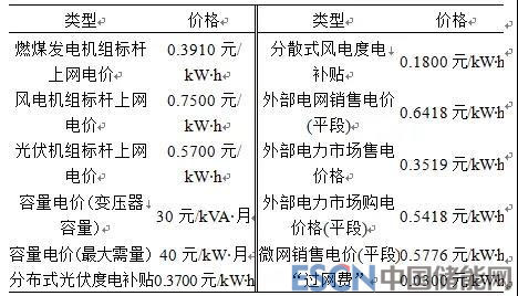 未參與電力市場前,微網(wǎng)內(nèi)部分布式能源上網(wǎng)電量以當?shù)厝济喊l(fā)電機組標桿上網(wǎng)電價結(jié)算,外購電量以目錄銷售電價(考慮峰谷分時)結(jié)算。