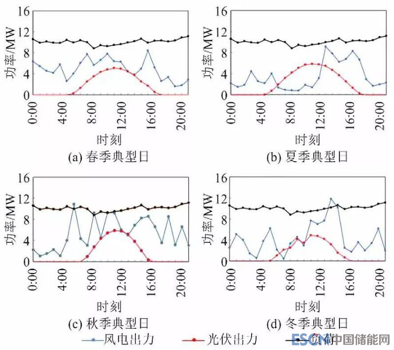 圖8四季典型日微網(wǎng)風(fēng)光出力和負荷曲線