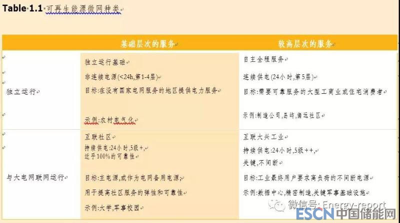 可再生能源微網利用技術來駕馭太陽能,水電,生物質能,風能和/或混合能源(后者能夠利用儲能或例如柴油發(fā)電廠)。 它們的容量從低于1千瓦(kW)到10兆瓦(MW)不等(IRENA,2016b)。 微網可以與大電網連接或者獨立運行(表1.1)。 獨立運行的微網對于非電氣區(qū)域尤其重要,并且可以在以后隨時與大電網互聯(lián)。