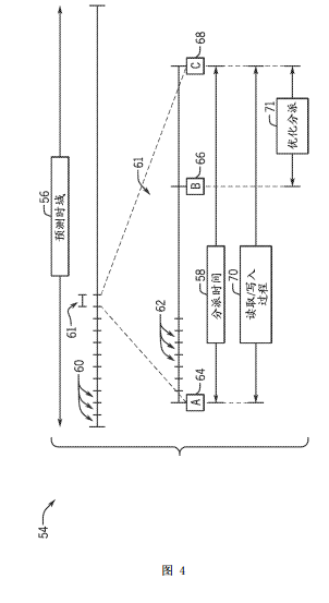 在整個時間步61(例如,在AB時間窗口和BC時間窗口兩者中連續(xù)地)中,微電網(wǎng)控制系統(tǒng)12從微電網(wǎng)資產(chǎn)15讀取信息并且在讀取/寫入過程70中將命令/指令寫入微電網(wǎng)資產(chǎn)15。讀取/寫入過程70可在時間間隔62內(nèi)發(fā)生,例如以每10秒、20秒、30秒等等。特別地,在時間點B 66處,在AB時間窗口期間收集的信息或數(shù)據(jù)(例如,從微電網(wǎng)資產(chǎn)15讀取的信息)被鎖存并且可形成數(shù)據(jù)文件并將其存儲在存儲器組件50內(nèi)。該數(shù)據(jù)文件可被微電網(wǎng)控制系統(tǒng)12使用,并且更具體地,通過運行微電網(wǎng)優(yōu)化程序代碼的處理器46訪問,以在優(yōu)化分派過程71期間在BC時間窗口中計算微電網(wǎng)優(yōu)化調(diào)度。對優(yōu)化問題的最優(yōu)解決方案可在時間點C68處結(jié)束,并且優(yōu)化分派調(diào)度(例如,指令、命令或決策)經(jīng)由通信路徑36而與微電網(wǎng)資產(chǎn)15通信。采用該方式,新的命令將每幾秒(例如,10秒)與微電網(wǎng)資產(chǎn)15通信直到通過處理器46生成新的優(yōu)化問題并且在下一個時間步61內(nèi)對其求解。簡而言之,在某些實施例中,微電網(wǎng)控制系統(tǒng)12包含兩個相對快和慢的過程:每幾秒(例如,10秒)出現(xiàn)的快速讀取/寫入過程70,和在時間步61內(nèi)每幾分鐘/小時(例如,12分鐘)出現(xiàn)的慢優(yōu)化問題。如在圖4中圖示的,讀取/寫入過程70和優(yōu)化分派過程71兩者都在當(dāng)前時間步61內(nèi)的相同時間窗口(例如,時間窗口BC)內(nèi)出現(xiàn)。然而,在某些實施例中,在時間點C 68處傳送的優(yōu)化分派調(diào)度僅基于在時間點B 66處被收集并且存儲到數(shù)據(jù)文件中的鎖存數(shù)據(jù)。