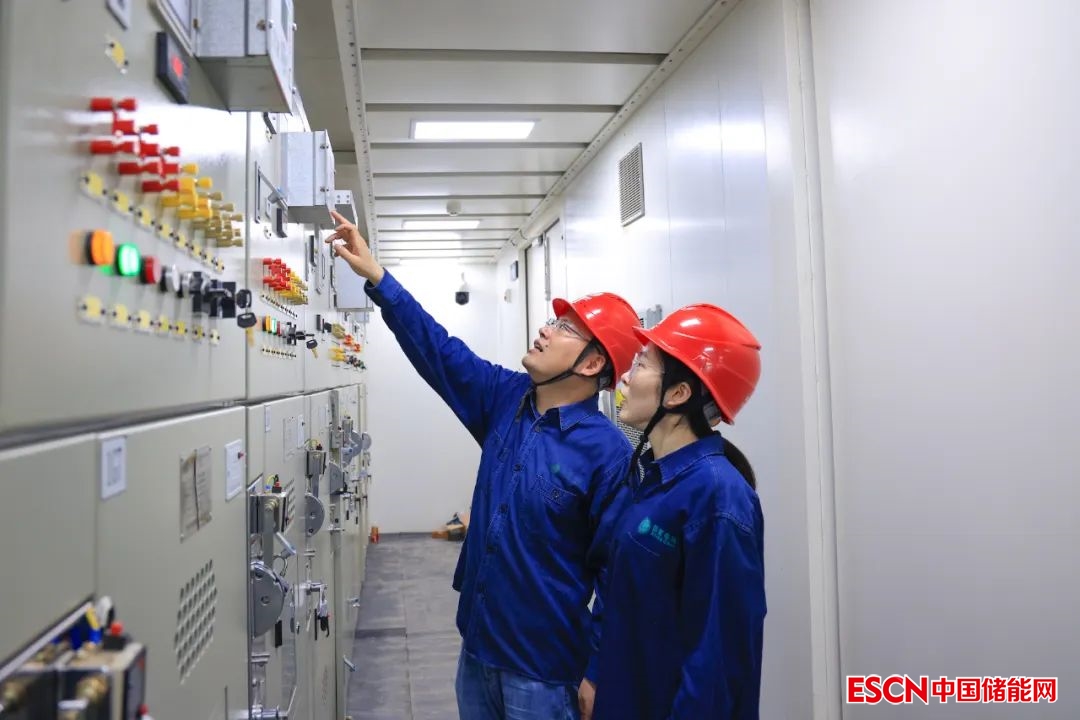 國(guó)網(wǎng)紹興供電公司工作人員正在110千伏移動(dòng)預(yù)裝式變電站內(nèi)檢查設(shè)備|嚴(yán)璐瑤 攝