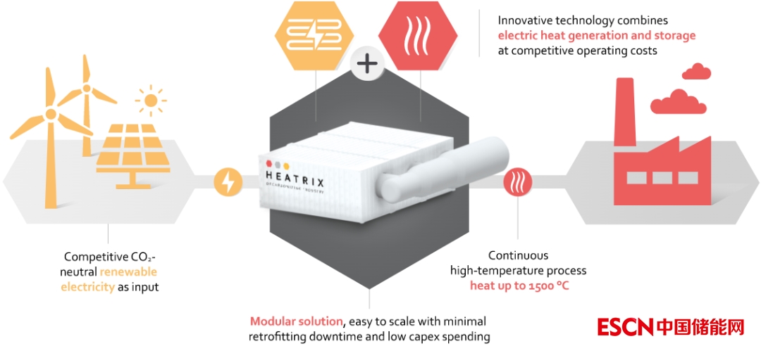 德國(guó)Heatrix公司的高溫儲(chǔ)熱技術(shù)可存儲(chǔ)高達(dá)1500攝氏度的溫度,該公司認(rèn)為,工業(yè)領(lǐng)域的高溫?zé)崮芟呐欧帕舜罅慷趸?,利用其?chǔ)熱技術(shù)可以實(shí)現(xiàn)完全的清潔替代。