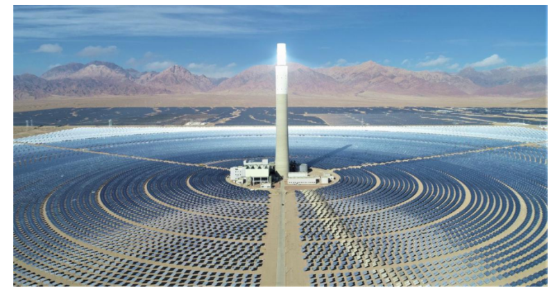 青海中控德令哈50MW光熱電站,是國(guó)家首批光熱發(fā)電示范項(xiàng)目之一,裝機(jī)容量50MW,配置7小時(shí)熔鹽儲(chǔ)能系統(tǒng),鏡場(chǎng)采光面積54.27萬(wàn)平方米,設(shè)計(jì)年發(fā)電量1.46億kWh,每年可節(jié)約4.6萬(wàn)噸標(biāo)準(zhǔn)煤,同時(shí)減排二氧化碳?xì)怏w約12.1萬(wàn)噸,具有良好的經(jīng)濟(jì)效益與社會(huì)效益。電站采用浙江可勝技術(shù)股份有限公司自主研發(fā)并完全擁有知識(shí)產(chǎn)權(quán)的塔式熔鹽光熱發(fā)電核心技術(shù),95%以上的設(shè)備實(shí)現(xiàn)了國(guó)產(chǎn)化。電站運(yùn)行表現(xiàn)已通過(guò)德國(guó)獨(dú)立工程咨詢公司Fichtner的完整技術(shù)評(píng)估,認(rèn)定其技術(shù)已達(dá)到全球同類電站最先進(jìn)水平。