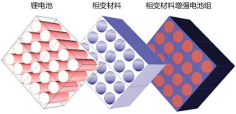 相變技術(shù)利用相變材料在發(fā)生相變時可以儲能與放能的特性達(dá)到對電池低溫加熱與高溫散熱的效果,目前主要有兩種方式,一是將相變材料填充到泡沫金屬或膨脹石墨中,另一種是將相變材料添加到其他導(dǎo)熱性能好的材料中。