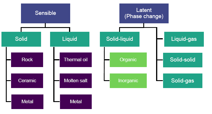 除了根據(jù)材料使用的儲熱機制(即顯熱與潛熱)對材料進行分組外,材料還可以根據(jù)其熱量和機械性能以及其他特性(例如毒性和與容器材料的反應性)進行分類。雖然在選擇存儲材料方面具有靈活性,但這種設計選擇涉及權衡影響系統(tǒng)其余部分的能力,即實現(xiàn)較低的單位能源成本和可接受的效率和放電功率成本。