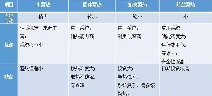 熔鹽蓄熱供暖系統(tǒng)與水蓄熱、固體蓄熱、箱變蓄熱對比,綜合占地面積、系統(tǒng)安全、使用壽命、儲能密度等因素考慮,占有明顯優(yōu)勢,詳見表1。