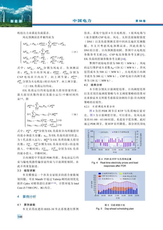(2)居民用電負(fù)荷響應(yīng)速度慢,可以在日前調(diào)度中通過PDR制定合理RTP來調(diào)節(jié)居民用電計(jì)劃;而EIL負(fù)荷響應(yīng)速度快,可以在日內(nèi)調(diào)度中通過投切EIL負(fù)荷來促進(jìn)系統(tǒng)風(fēng)電消納。通過在日前、日內(nèi)不同時(shí)間階段利用負(fù)荷側(cè)資源的不同響應(yīng)速度,能夠有效減少系統(tǒng)棄風(fēng)量。