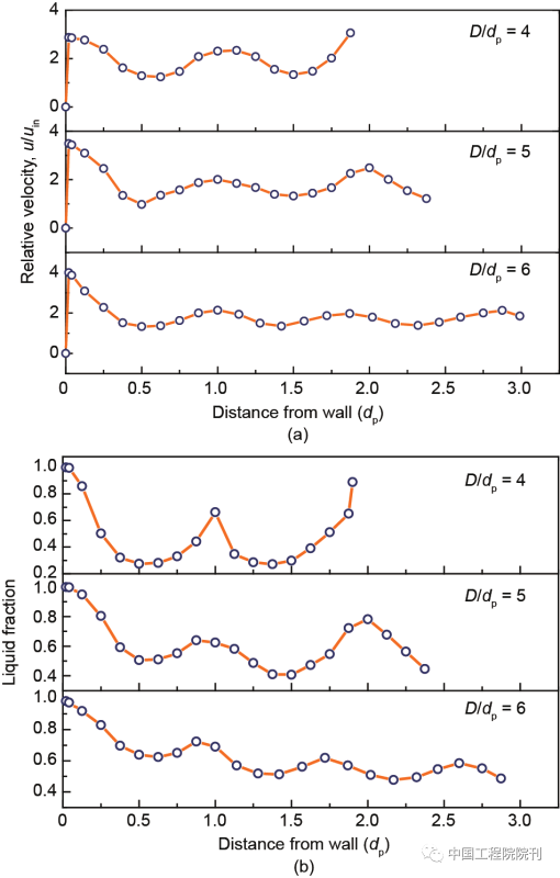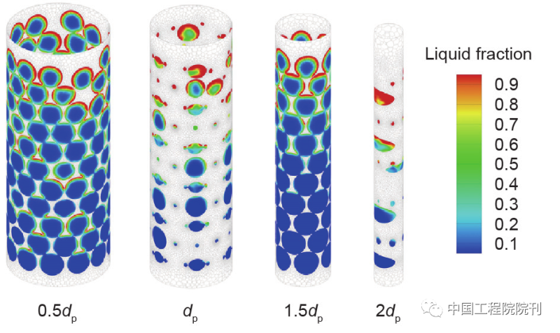 本文基于壁面效應引起的徑向孔隙率振蕩分布,建立了三維堆積床相變儲熱系統(tǒng)模型,通過將堆積床中相變膠囊溫度變化的模擬值與實驗對比,驗證了模型的可靠性。本文研究了徑向孔隙率振蕩分布對換熱流體的徑向流速、相變材料的徑向溫度以及相變材料徑向液相分數的影響。此外,還研究了不同的無量綱參數(如直徑比、雷諾數和史蒂芬數)對換熱流體和相變材料的影響,主要結論如下。