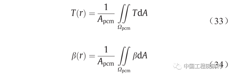 相變材料的徑向溫度和徑向液相分數分別定義如下: