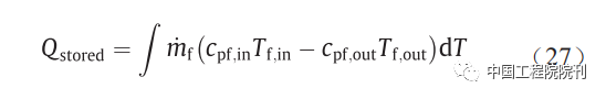 在儲熱過程中,堆積床相變儲熱系統(tǒng)的實際儲熱量 Qstored可以通過熱力學第一定律計算得到: