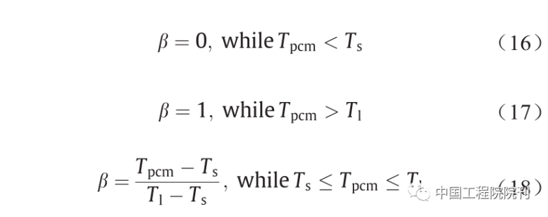 式中,Tpcm, T0, Ts, Tl分別代表相變材料的溫度、初始溫度、開始熔化溫度和終止熔化溫度。
