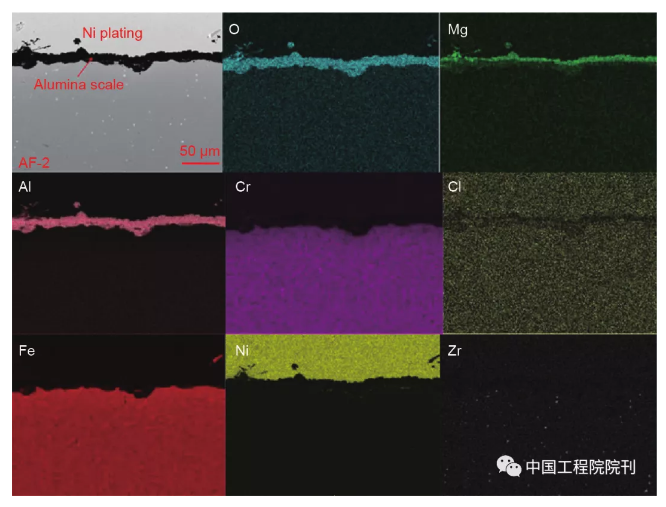 如圖16所示,附著在合金表面的氧化鋁保護層可以有效地抑制Cr和Fe的氧化溶解以及腐蝕性雜質(zhì)滲透進合金而腐蝕基體。