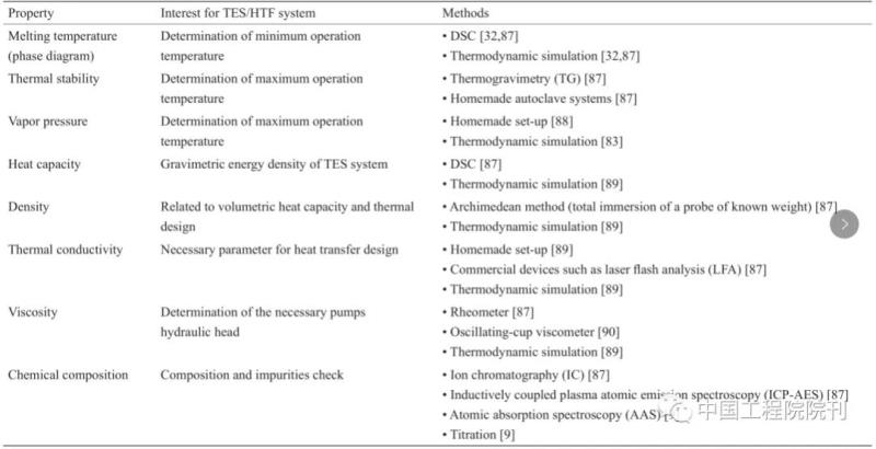 表3對于設(shè)計儲熱/導熱系統(tǒng)至關(guān)重要的熔鹽物性的測量以及熱力學模擬方法