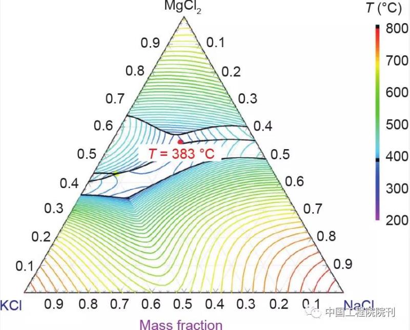 通過與堿土金屬氯鹽(如MgCl2、CaCl2)混合,可以顯著降低單一堿金屬氯鹽的熔點。在NaCl、KCl、CaCl2和MgCl2所形成的的二元混合鹽中,熔點最低的是KCl-MgCl2。